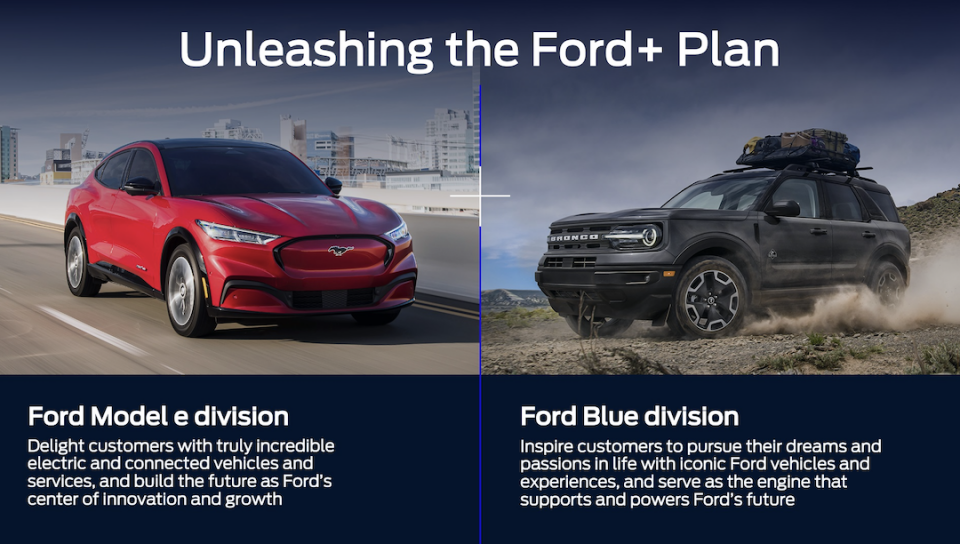 Ford Blue and Ford Model e will operate as distinct businesses, but share relevant technology and best practices to leverage scale and drive operating improvements.