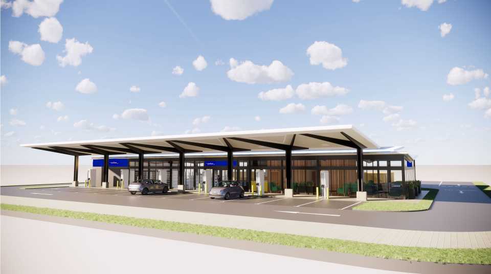 The first EV charging & convenience hub with 24 ultra-fast charging points to open later in 2021.