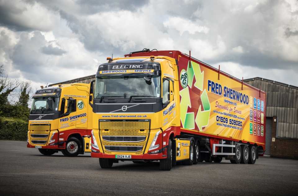 Fred Sherwood Transport has taken delivery of two 44-tonne Volvo FH Electric 6x2 tractors for its waste and recycling operations in and around its main headquarters in Shepshed, Leicestershire.